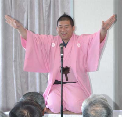 林家染太(45回)の時そばを聞いた後、扇子を右にもっての、