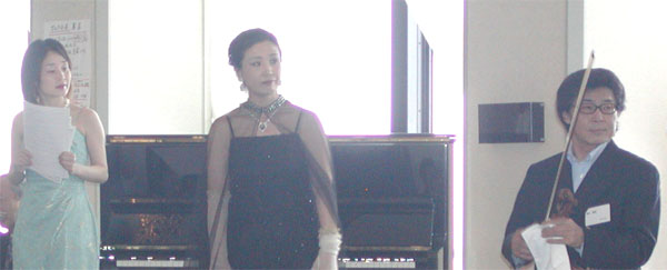多田美加さんのソプラノ、酒井さんのバイオリン演奏で始まった懇親会は、