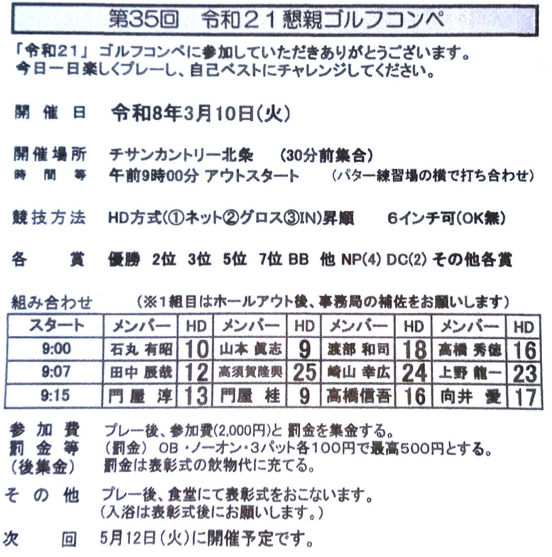 ホーム > 同期会 > 21期 > 第35回「令和21(北高21期)懇親ゴルフコンペ