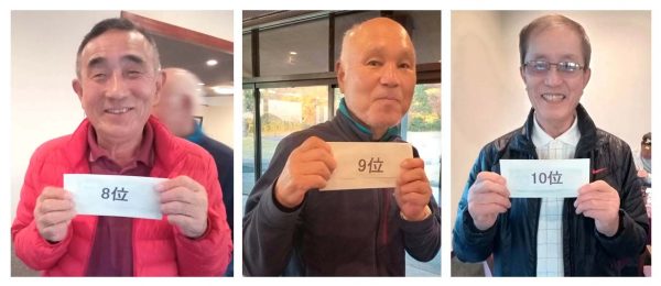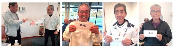3組目はニアピン4名、ドラコン1名獲得し、同じショートホール全員パーなど楽しく過ごすことが出来ました。幹事、秀ちゃん何時もありがとうございます。くじけないように引き続き練習に励みます。(上野龍一)
